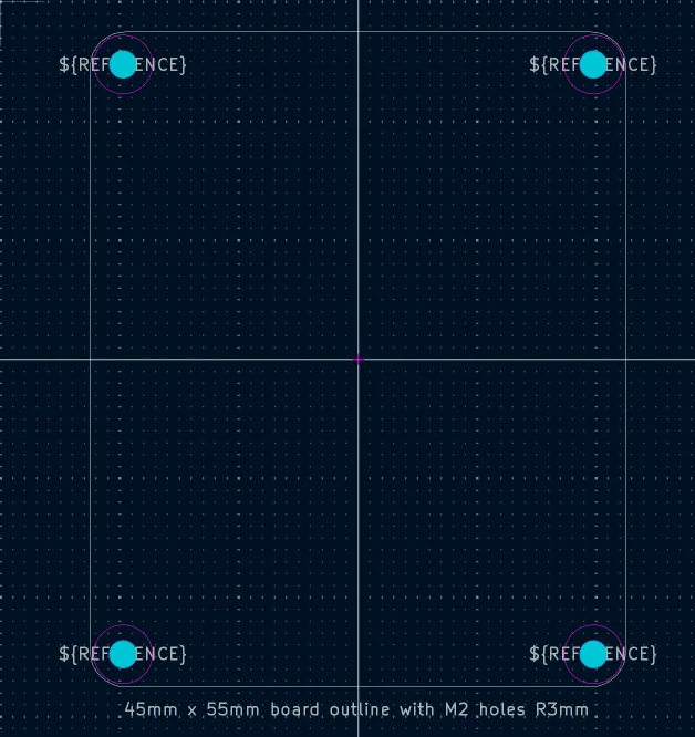 PCB fabricators require a board outline on the `Edge.Cuts` layer to specify the board size and shape. While drawing the board outline in the PCB editor is straightforward and uses the standard line and shape drawing tools, it is convenient to retain standardized board outlines and related parts, such as fasteners, as reusable footprints. During the board layout process, you can simply plop a board outline, along with perfectly-placed mounting holes into the editor and you can concentrate on the placing components and routing. Also, having a standard library of board outlines gives you a predictable set of size choices for enclosures and for ordering SMD stencils.
